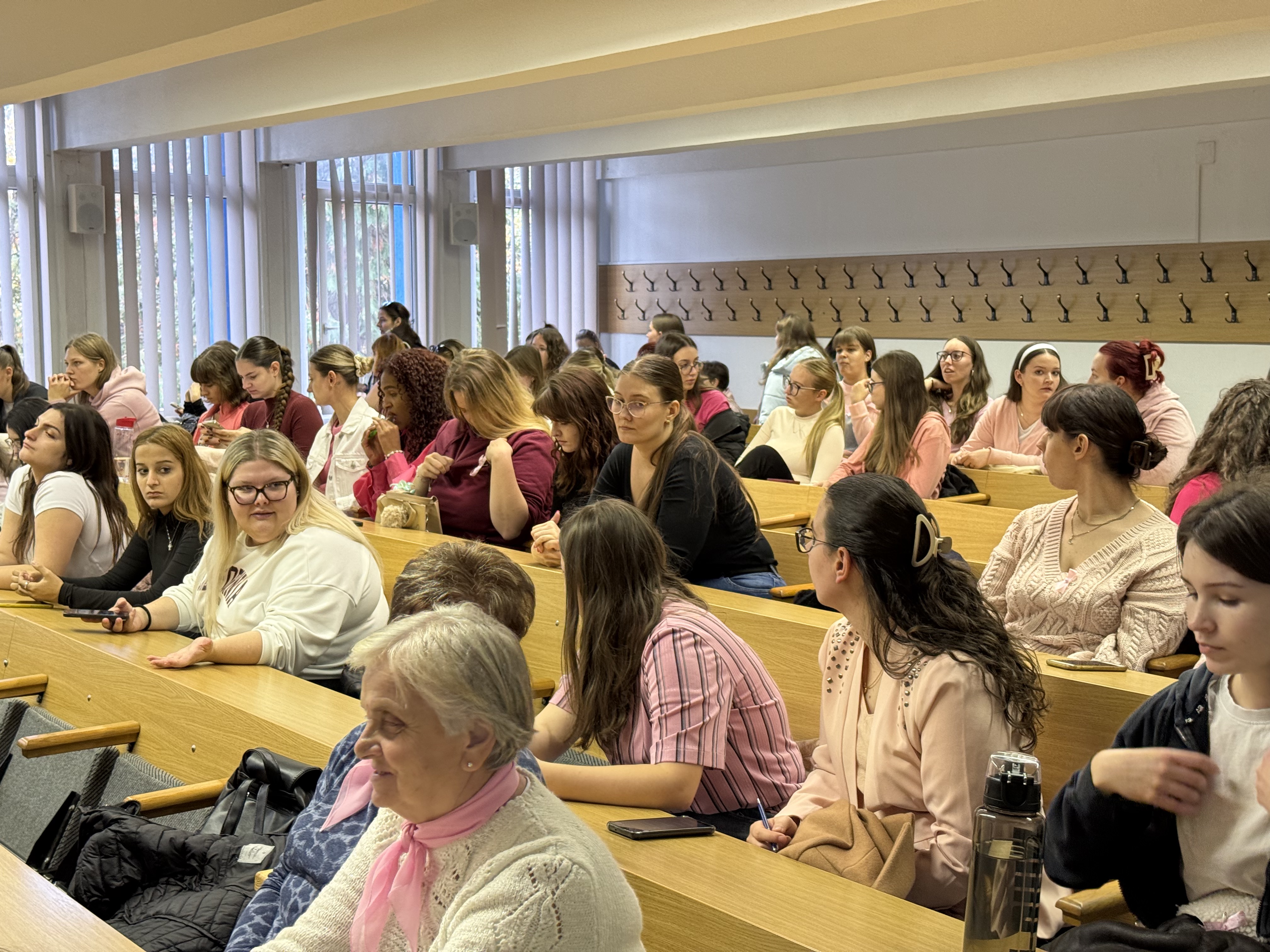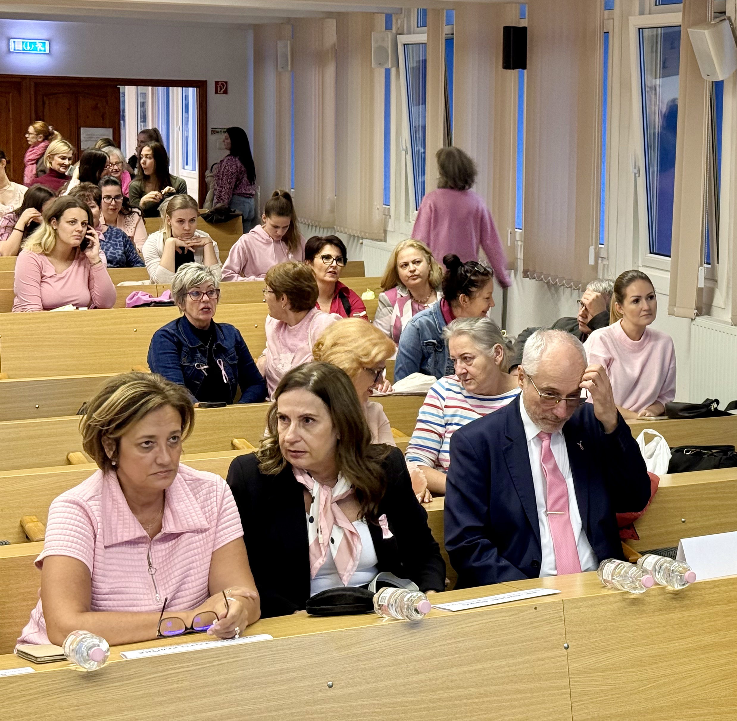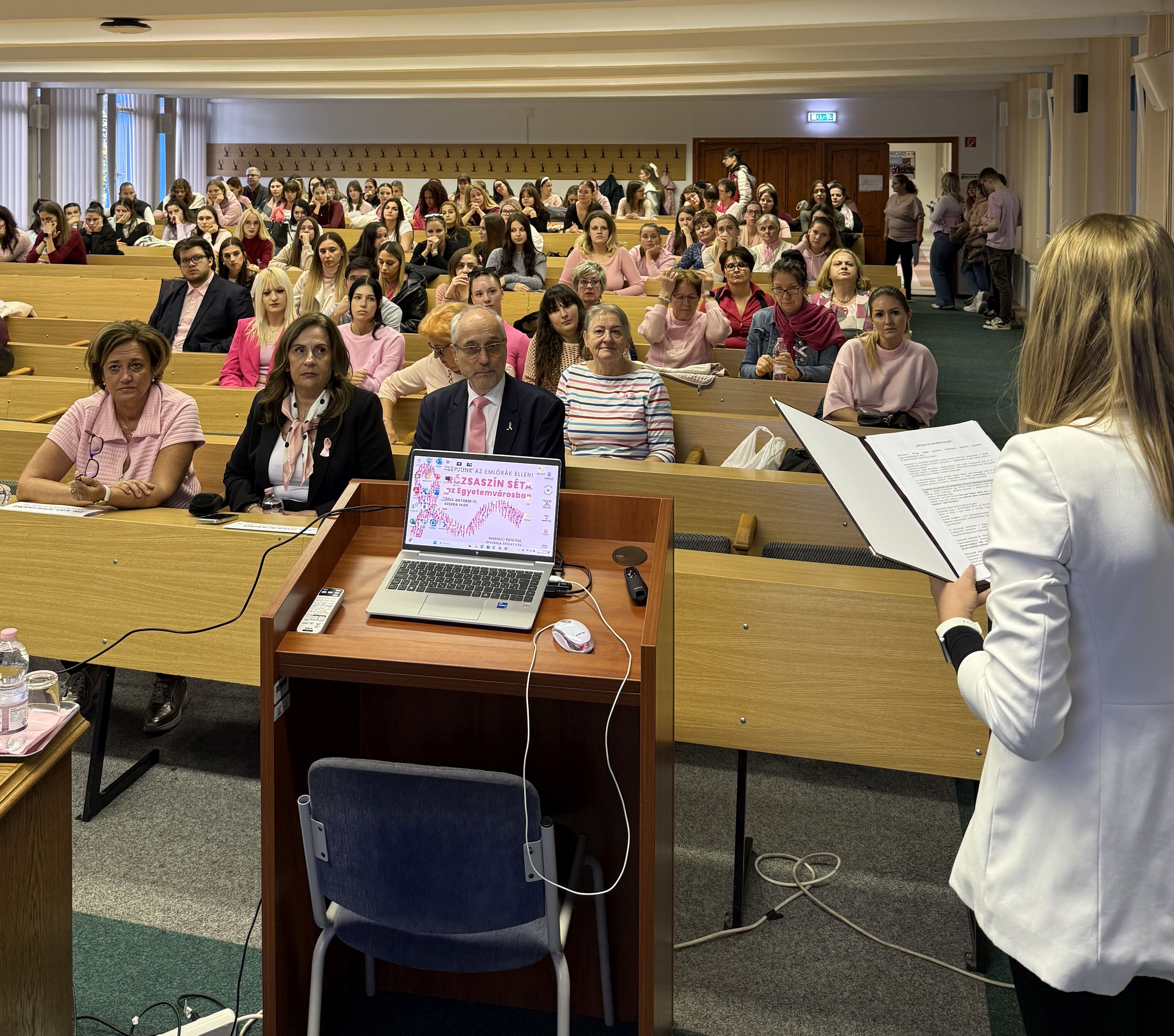 Az Egészségtudományi Kar szervezésében idén is megrendezésre került a már hagyományos Rózsaszín séta, amely az emlőrák megelőzésére, a korai felismerés fontosságára és az egészségtudatos életmódra hívta fel a figyelmet. Az eseményhez több, mint 300 résztvevő csatlakozott, köztük mintegy 200 egyetemi hallgató, valamint a Ferenczi Sándor Egészségügyi Technikum diákjai, oktatók, egészségügyi szakemberek, civilek és városi vezetők.